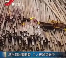 起重机钢丝绳断裂,工人被砸中!!!